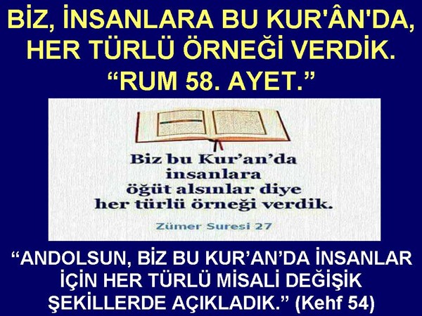 “BİZ, İNSANLARA BU KUR'ÂN'DA HER TÜRLÜ ÖRNEĞİ VERDİK.” (Rum 58)