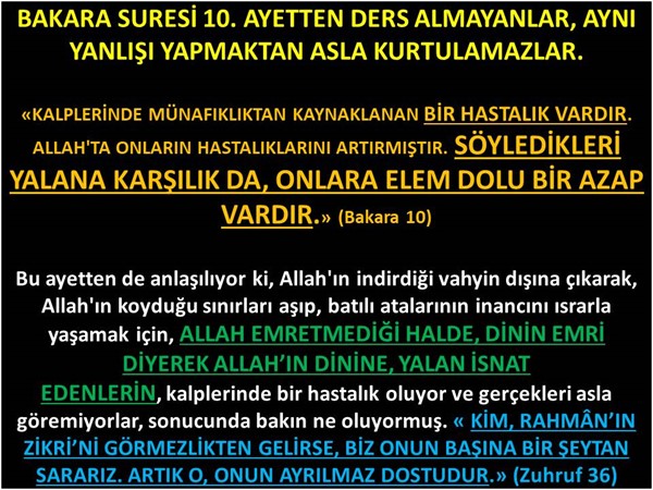 BAKARA SURESİ 10. AYETTEN DERS ALMAYANLAR, AYNI YANLIŞI YAPMAKTAN ASLA KURTULAMAZLAR.