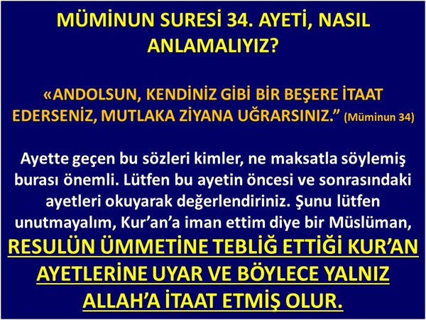 Müminun 34: ANDOLSUN, KENDİNİZ GİBİ BİR BEŞERE İTAAT EDERSENİZ, MUTLAKA ZİYANA UĞRARSINIZ.” (Diyanet meali)