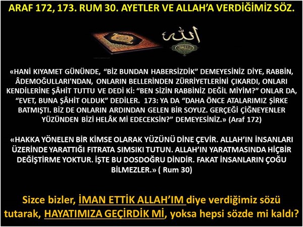 Araf 172, 173. Rum 30. Ayetler Ve Allah’a Verdiğimiz Söz.