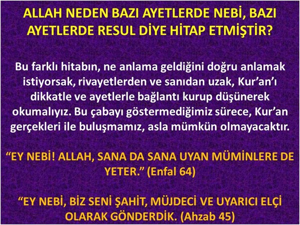 ALLAH NEDEN BAZI AYETLERDE NEBİ, BAZI AYETLERDE RESUL DİYE HİTAP ETMİŞTİR?