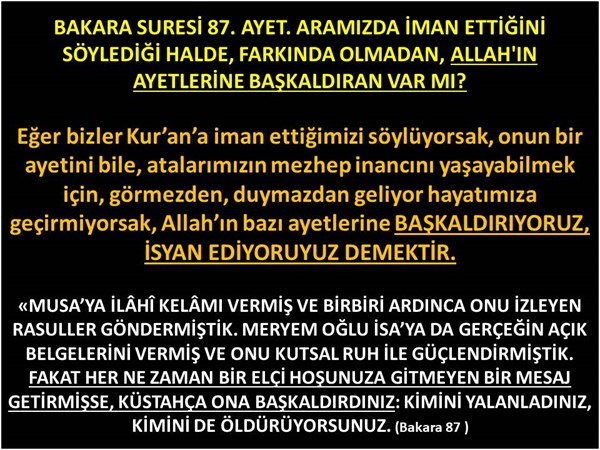 BAKARA SURESİ 87. AYET. ARAMIZDA İMAN ETTİĞİNİ SÖYLEDİĞİ HALDE, FARKINDA OLMADAN ALLAH’IN AYETLERİNE BAŞKALDIRAN VAR MI?
