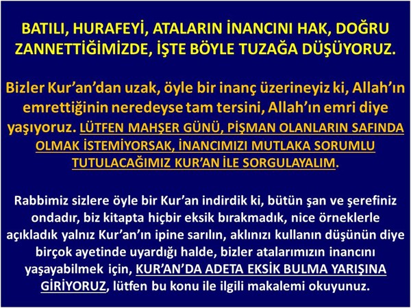 BATILI, HURAFEYİ, ATALARIN İNANCINI HAK, DOĞRU ZANNETTİĞİMİZDE, İŞTE BÖYLE TUZAĞA DÜŞÜYORUZ.
