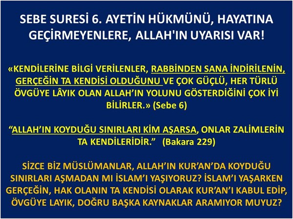 SEBE SURESİ 6. AYETİN HÜKMÜNÜ, HAYATINA GEÇİRMEYENLERE, ALLAH'IN UYARISI VAR!