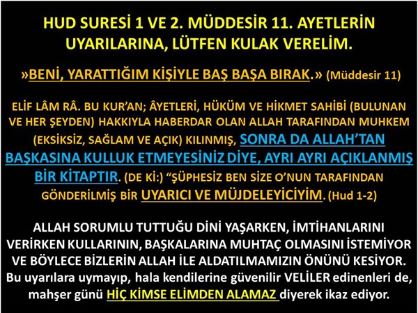 HUD SURESİ 1 VE 2. MÜDDESİR 11. AYETLERİN UYARILARINA, LÜTFEN KULAK VERELİM.