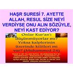 Kur'an'da Maide suresi 45. ayetinde, Allah'ın indirdiği ile hükmetmeyenler, zalimlerin ta kendisidir diyorsa, Allah'ın indirdiği Kur’an'a özet bilgidir, orada her detay, bilgi yoktur yalnız Kur'an ile ne namaz kılabiliriz nede zekat verebiliriz diyerek, Kur'an'ı küçümseyenler Allah'ın tabiriyle, ZALİMLERİN TA KENDİSİDİR. Bu yazımı yazmakta ki maksadım, Haşr suresi 7. ayette geçen bir cümleyi alıp ona, bahsedilen konuda geçmeyen ve Kur'an'ın yüzlerce ayetine ters düşen anlamları verip, beşerin hurafe yalan ve yanlışlarına delil göstermenin, bizleri nerelere sürükleyeceğini göstermek içindir. Bizler Kur’an ayetlerinde geçen bir kelime ya da cümleyi alıp, ona eğer kendi batıl itikatlarımıza delil yaparsak, bizleri nasıl dinden saptıracağını bu örnekte görebiliriz. Ne yazık ki bu yöntem, o kadar çok kullanılıyor ki günümüzde, bunu yaptığımızda bu inancın nerelere varacağını sizler tahmin edin. Haşr suresi 7. ayettin içinde, şöyle bir cümle geçer. İki farklı mealden yazıyorum ki daha iyi anlaşılsın.