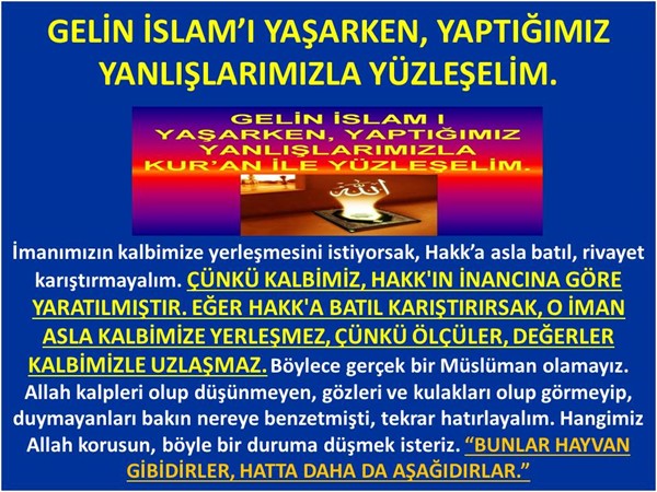 GELİN İSLAM’I YAŞARKEN, YAPTIĞIMIZ YANLIŞLARIMIZLA KUR’AN İLE YÜZLEŞELİM.