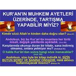 Bunu yapan Allah ın ayetlerini sorgulamış olur, lütfen unutmayalım. Bizler Allah ın ayetlerini sorgulayamayız ama Allah ayetlerim üzerinde düşün, aklını kullan ey kulum diyor. Aranızda ayetlerimi tartışın demiyor. Tartışma genel konularda, yaşamımızda her zaman vardır ve bazen çok da iyi sonuçlar verir. Ama konu din ve iman olunca, bizler tartışmayı bırakıp, Allah ın apaçık vahyine uymamız gerekir. Asla tartışmadan ama düşünerek. Hemen şöyle düşündüğünüzü tahmin ediyorum. İslam toplumu neredeyse her konuda tartışıyor, ama ne yazık ki bir noktada anlaşamıyorlar. Evet, bırakın tartışmayı birbirimize düşman olduk. Hem de kanlı bıçaklı. Peki, sebebi nedir diye düşünüyor muyuz? Allah madem sizleri Kur’an dan sorumlu tutuyorum diye hükmünü vermiş, neden anlaşamıyoruz. Birde Yaradan sorumlu olduğumuz ayetleri de, MUHKEM gönderdiyse, tartışmamızın sebebi nedir?
